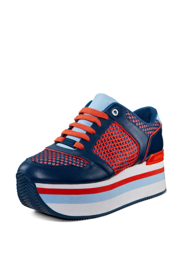 Sneakers rouges, bleues et blanches à maxi plateforme de DKNY