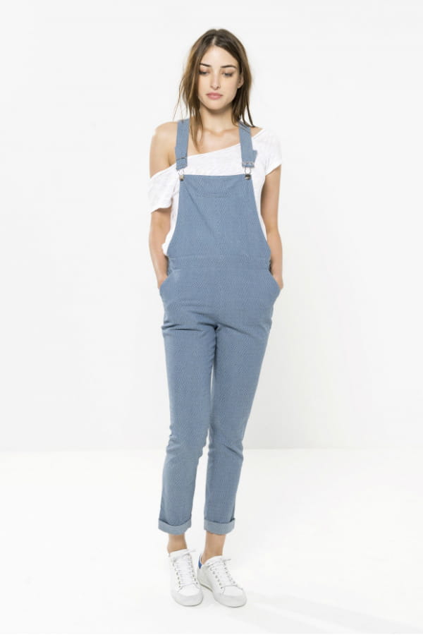 Salopette bleue à l'imprimé chevrons de Les Petites