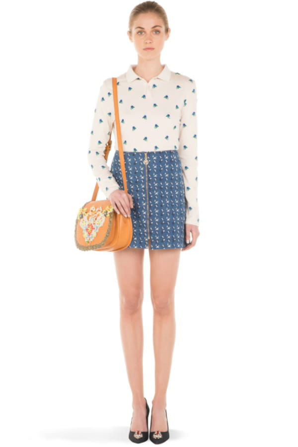 Jupe trapèze brodée de fleurs avec zip frontal de Manoush