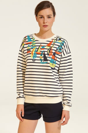 Sweatshirt marinière imprimé de voiliers graphiques de Petit Bateau