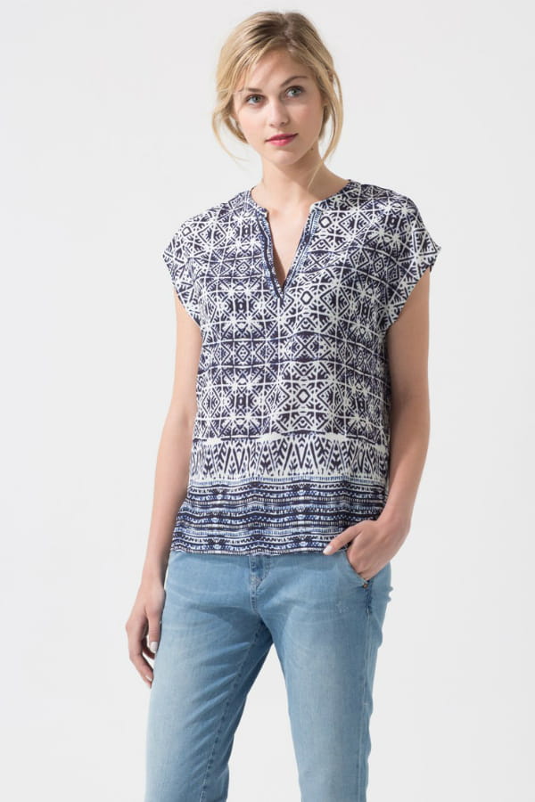 Top fluide à encolure en V avec imprimé géométrique bleu de 1.2.3