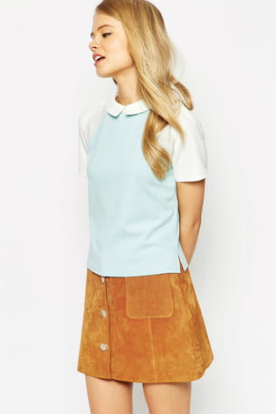 Polo à col Claudine avec manches blanches et buste turquoise de ASOS