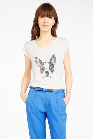 T-shirt en lin à l'imprimé bulldog multicolore de Comptoir des Cotonniers