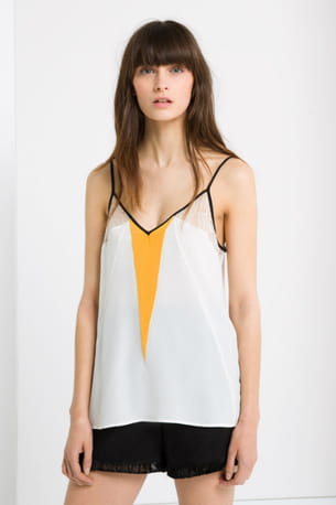 Top en soie avec décolleté en V et empiècement en dentelle sur le devant de Sandro