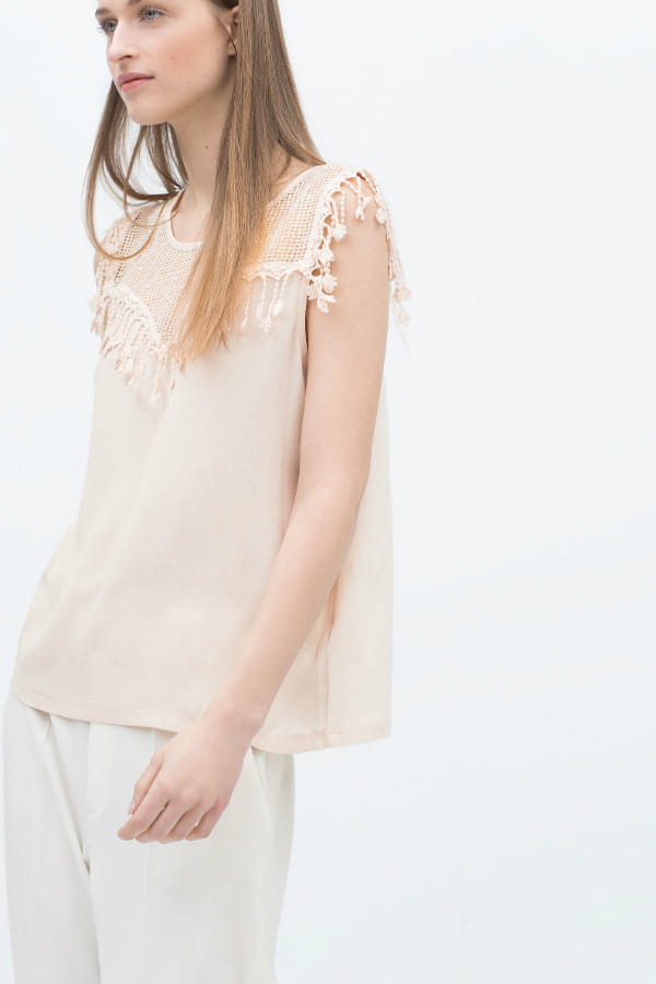 Débardeur nude avec partie haute en crochet à franges de Zara