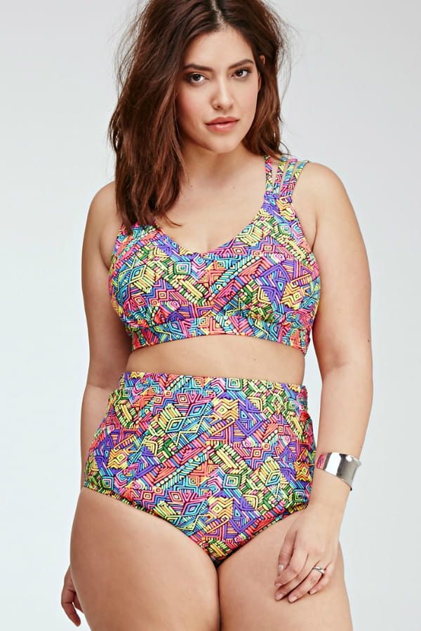 Maillot de bain taille haute au motif tribal avec lanières croisées dans le dos de Forever 21 Grandes Tailles