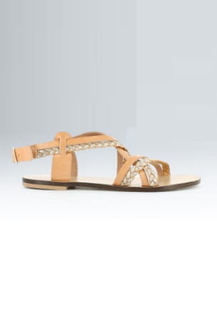 Sandales nu-pieds en cuir naturel et doré de Jonak
