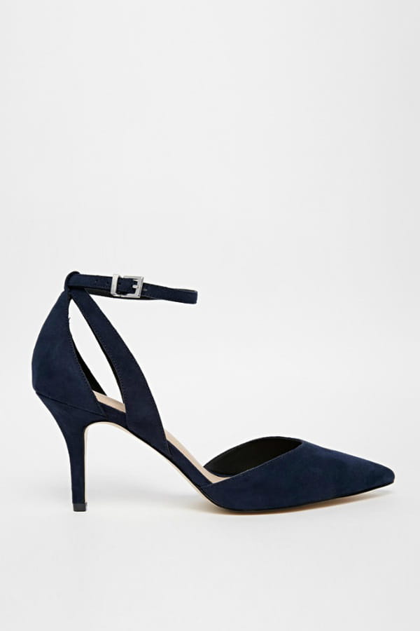 Escarpins pointus en tissu bleu marine avec bride à la cheville de ASOS