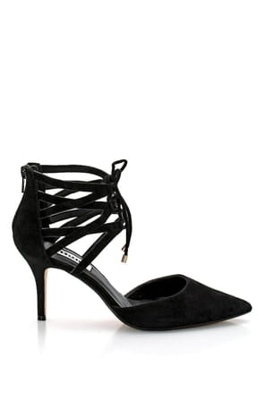 Escarpins en daim noir avec lanières multiples autour de la cheville de Dune London