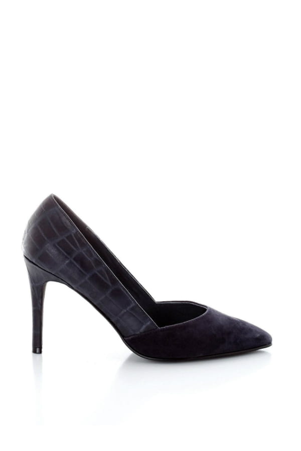 Escarpins en daim et cuir façon crocodile de Laura Clément