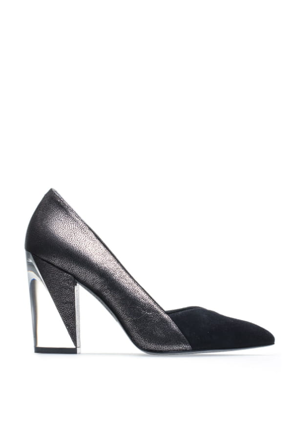 Escarpins métallisés avec pointe en daim et talon en plastique de What For