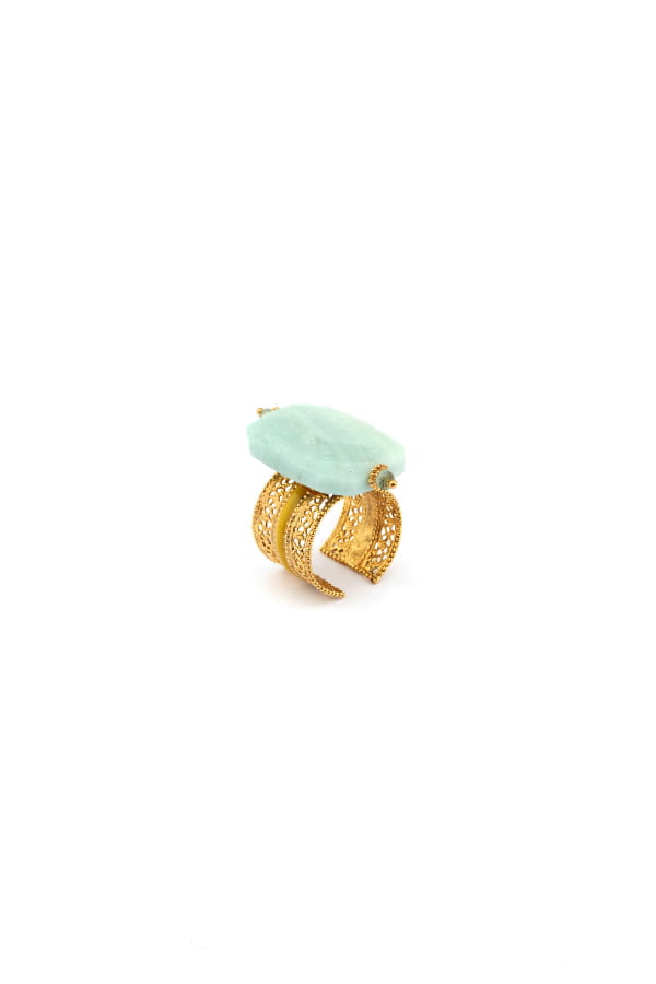 Bague avec pierre semi-précieuse et métal dentelé de Satellite
