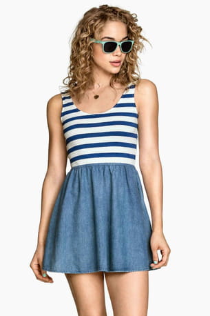 Robe patineuse avec jupon en denim et partie haute rayée de H&M