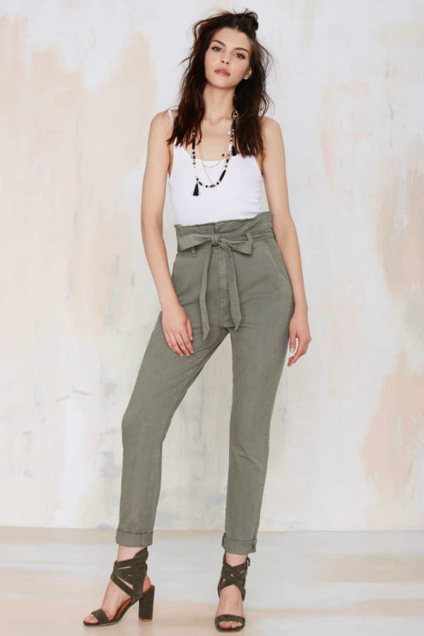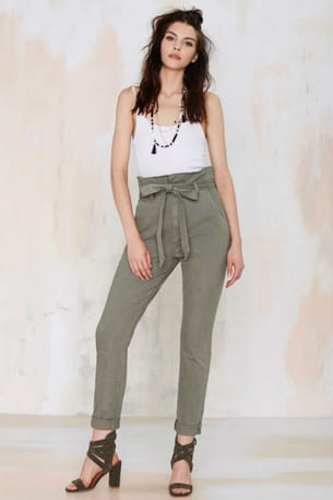 Pantalon taille haute noué à la taille couleur olive de 7 For All Mankind