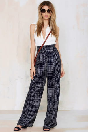 Pantalon taille haute bleu marine à pois blancs de Glamourous