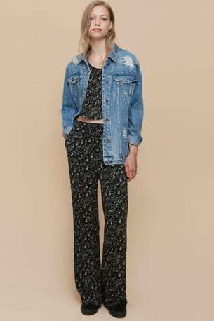 Pantalon large de couleur noire à l'imprimé floral de Pull & Bear