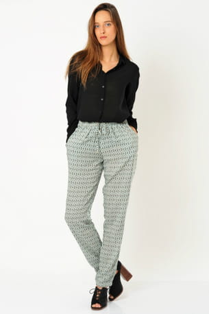 Pantalon fluide resserré à la taille à l'imprimé géométrique de Sud Express