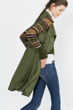 Longue veste kaki sans manches et ceinturée de Zara