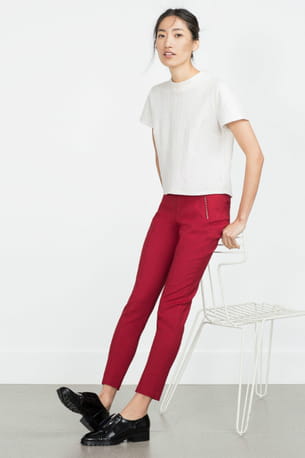 Pantalon boyish de couleur rouge avec poches zippées de Zara