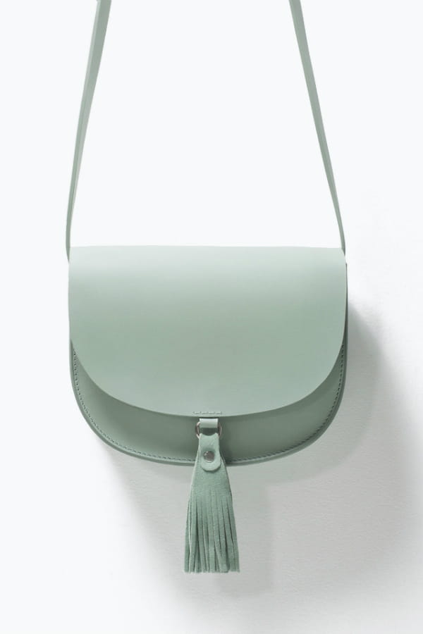 Sac en cuir couleur menthe avec fermeture aimantée ornée d'une houppe de Zara