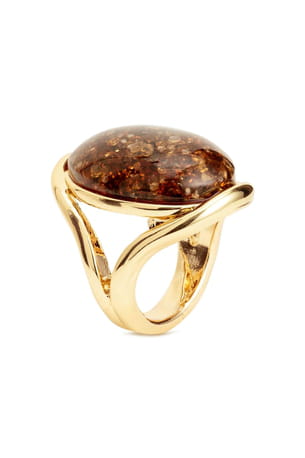 Grande bague en métal doré avec pierre ovale façon ambre de H&M