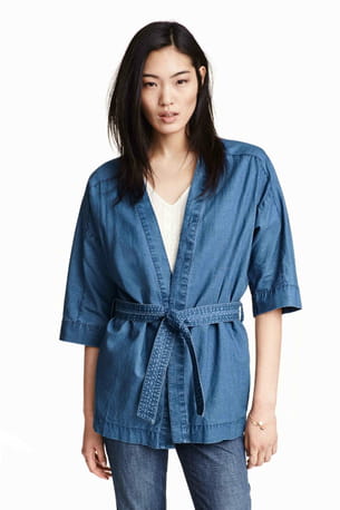 Kimono tissé en coton avec poches sur les côtés et ceinture à nouer de H&M