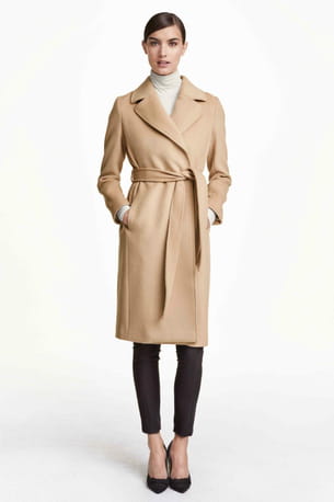 Manteau sans boutonnage en laine mélangée avec ceinture à nouer de H&M
