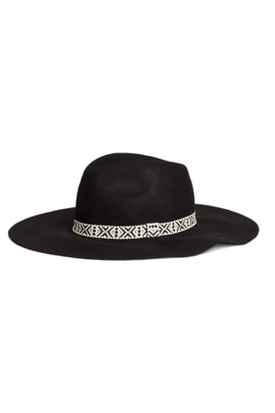 Chapeau noir à bords mous et ruban au motif ethnique de H&M