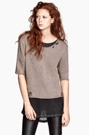 Pull en maille légère couleur taupe avec détails usés de H&M