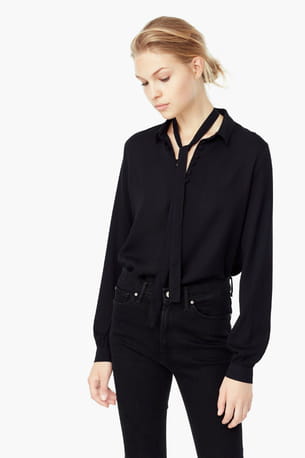 Blouse fluide boutonnée avec ruban à nouer au cou de Mango