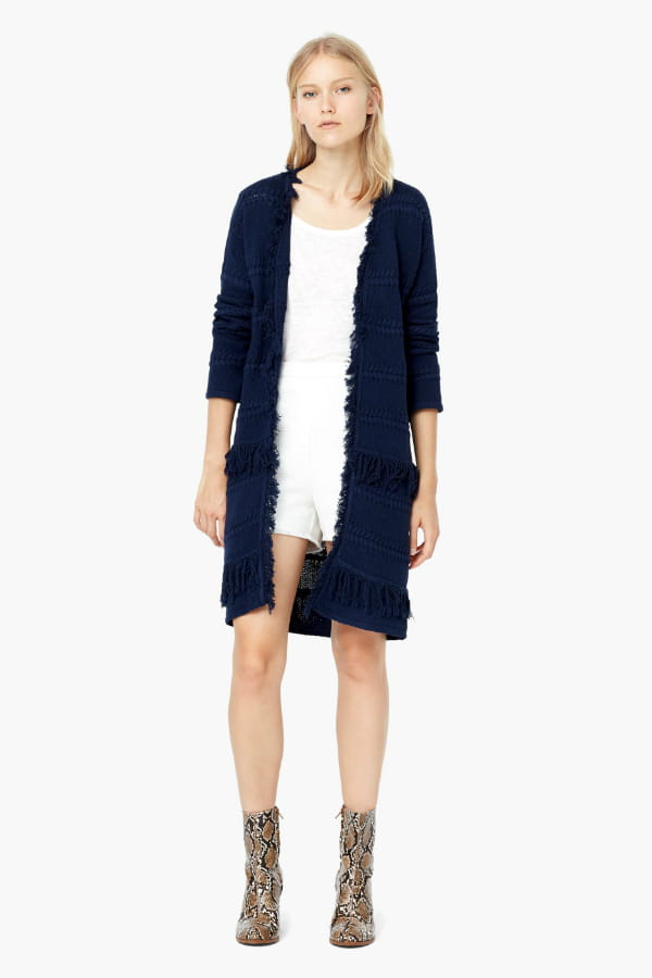 Cardigan bleu marine sans boutonnage avec détails frangés de Mango