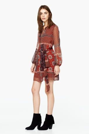 Robe fluide en mousseline avec ceinture à nouer de Mango