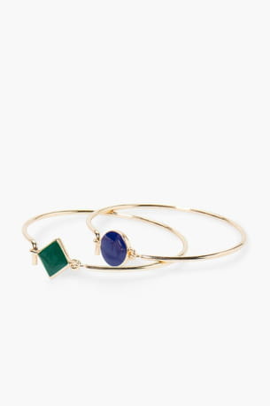 Set de deux bracelets dorés avec pierres bleues et vertes de Mango