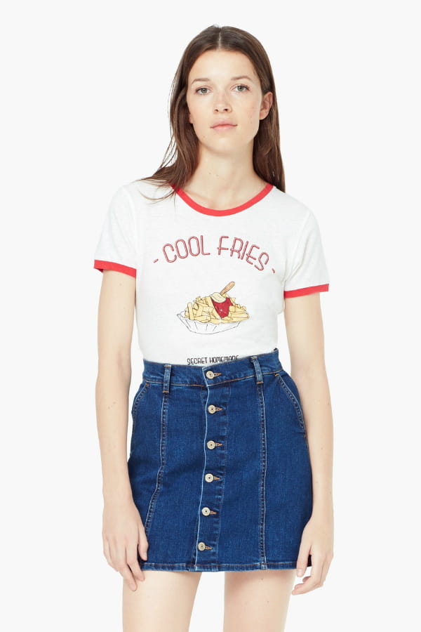 T-shirt en lin avec inscription "Cool fries" de Mango