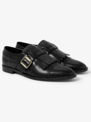 Loafers à tablier à franges en cuir noir de Mango