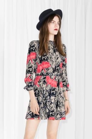 Robe manches longues à l'imprimé abstrait noir et rose de & Other Stories