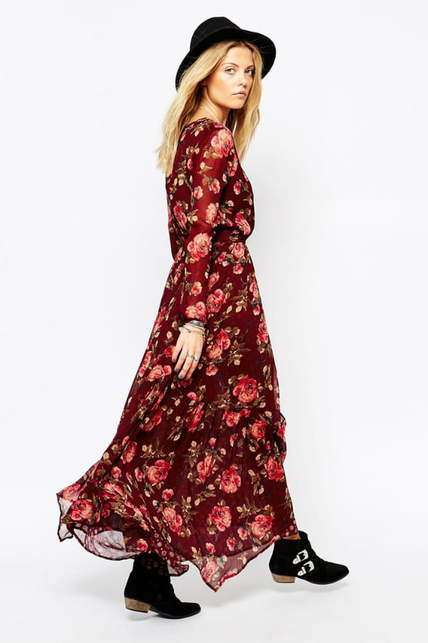Maxi robe cache-coeur rouge bordeaux à fleurs de Abercrombie & Fitch