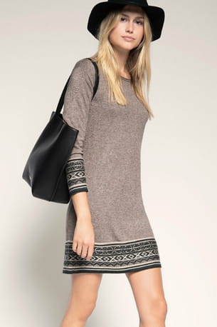Robe en maille fine couleur taupe avec bordure imprimée ethnique de Esprit