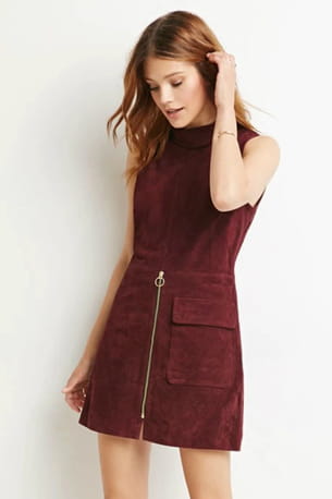 Robe trapèze couleur bordeaux avec zip frontal de Forever 21