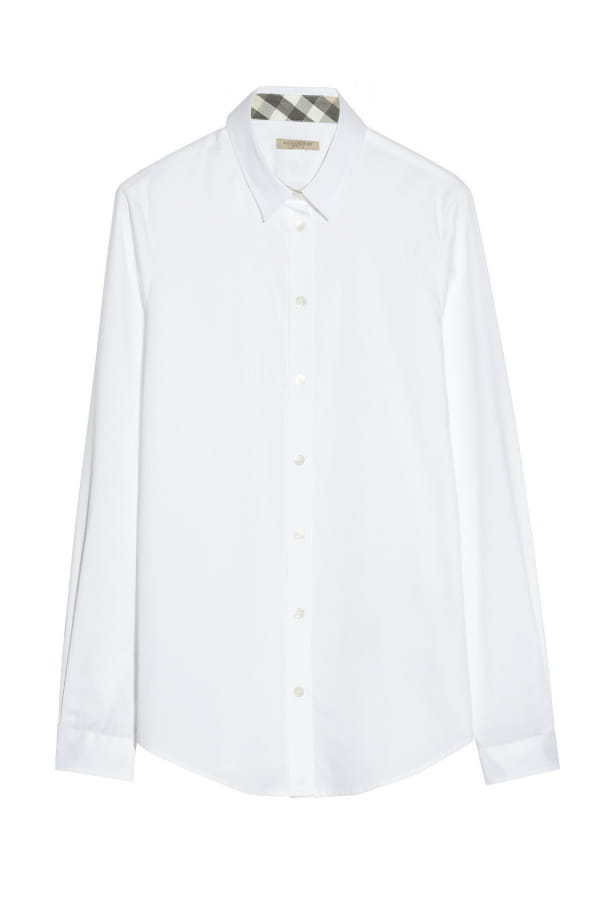 Chemise en coton stretch avec intérieur du col en tartan de Burberry