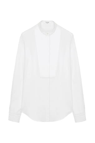 Chemise en popeline de coton unie avec col officier et plastron géométrique de Alain Figaret