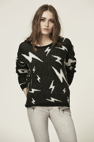 Pull noir avec éclairs contrastants de I.Code by IKKS