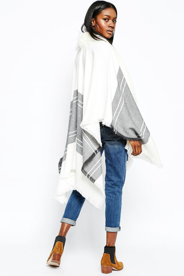 Cape blanche et grise avec fausse fourrure au col de River Island