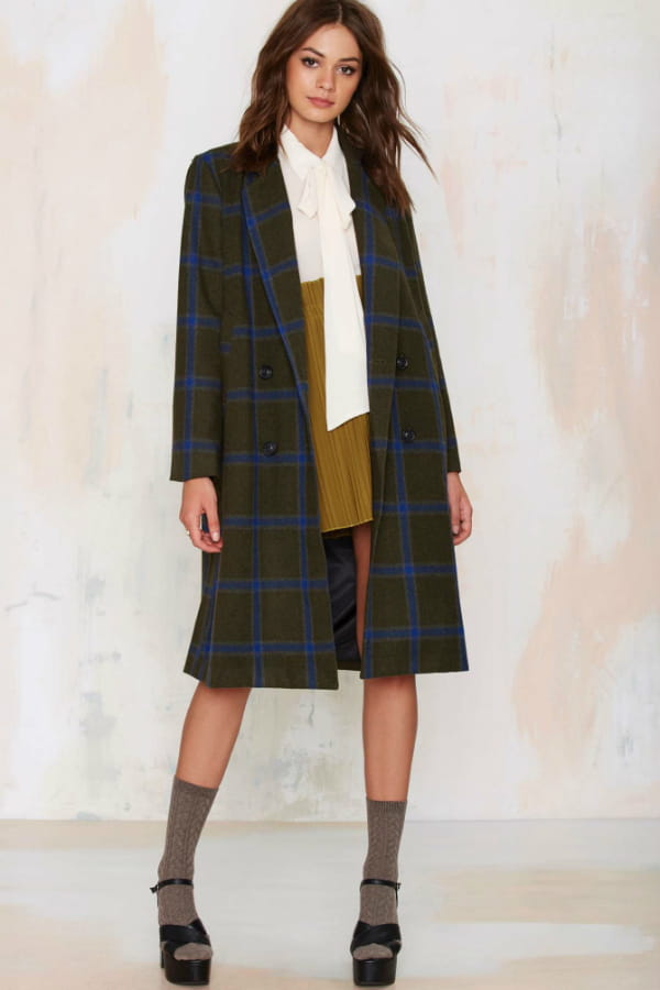 Manteau en tartan kaki et bleu de Nasty Gal