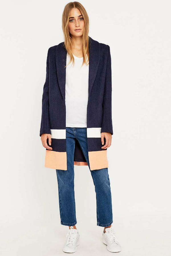 Manteau bleu à empiècements blancs et nude de Minkpink