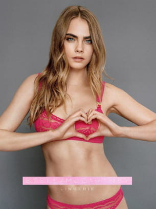 Parure fuchsia créée dans le cadre de Octobre Rose, dont une partie des bénéfices est reversée pour la lutte contre le cancer du seinavec soutien-gorge sans armature et culotte de Stella McCartney