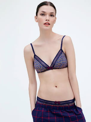 Parure en dentelle et coton imprimé avec soutien-gorge triangle et slip de Monoprix