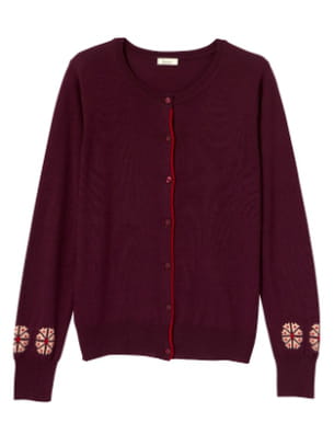 Gilet bordeaux jacquard à motifs flocons de neige en bord de manches de Somewhere
