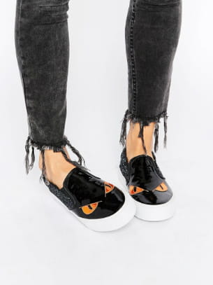 Chaussures slip-on noires à motif mauvais yeux de DELAWARE sur Asos