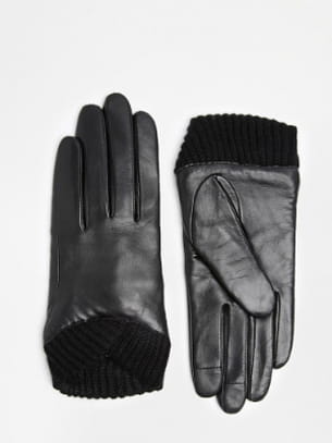 Gants en cuir noir avec poignets en maille d'Asos